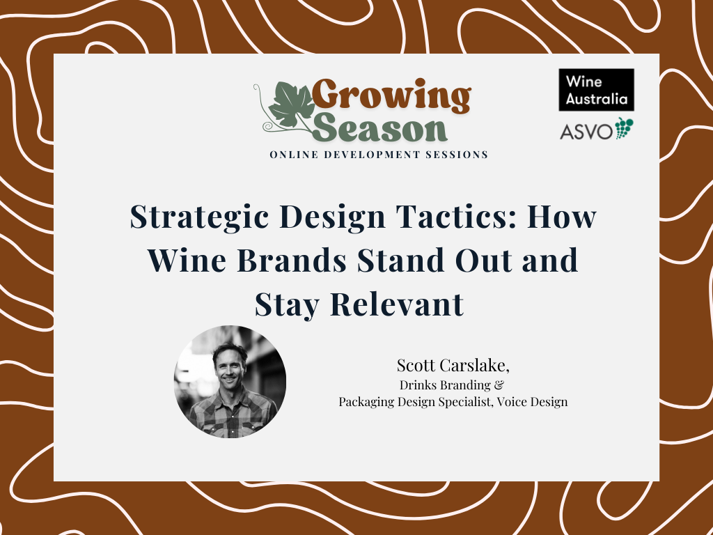 Join Scott Carslake of Voice Design for a deep dive into strategic design tactics applied to wine brands and their packaging, helping them stand out and be recognised in one of the most competitive categories in the world.